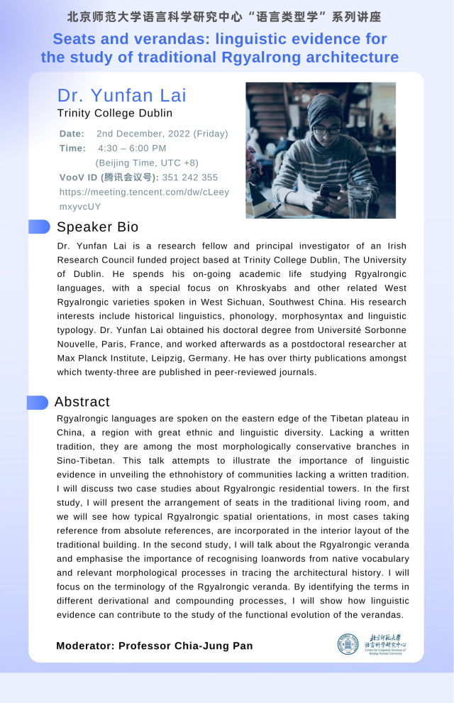 讲座预告|语言科学研究中心“语言类型学”系列讲座